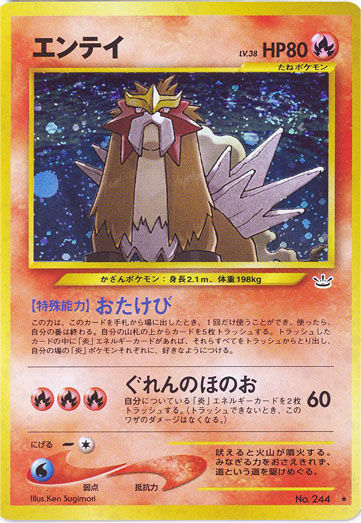 自ら山札を削り、使ったら自分の番が終わるという「おたけび」の猛々しさには心が熱くなる。これも実にエンテイらしくて好きなカードです。