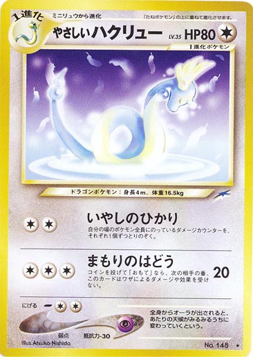 第1弾リザードンもそうですが、HP120は旧ウラ最大級、ワザのダメージ100も殆どの相手を一撃で倒す威力であり、かなり強力なポケモンと言えます。当時は今ほどエネの加速手段がないので、燃費の悪さがネックですね。